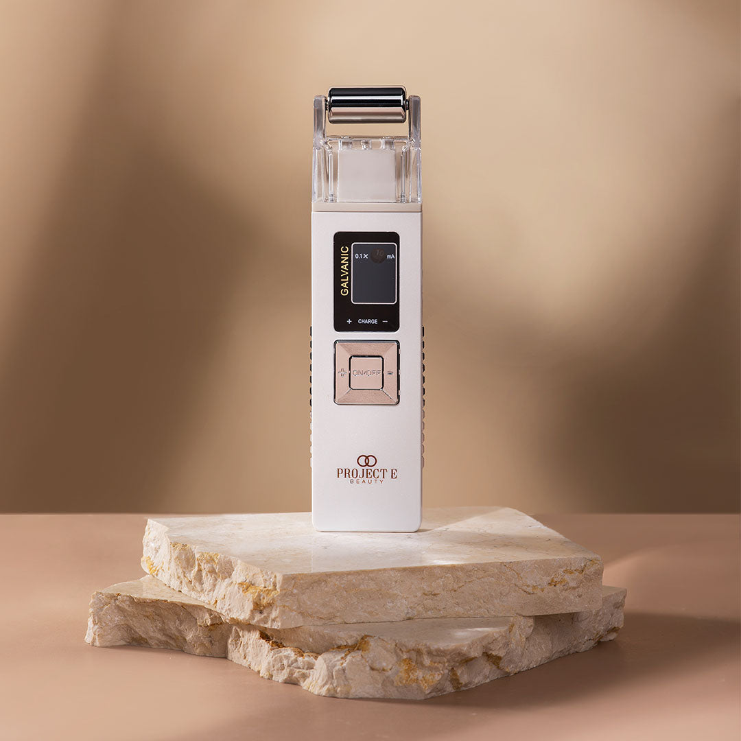 Dual-mode galvanic roller to decongest pores and enhance product absorption for increased skin nourishment