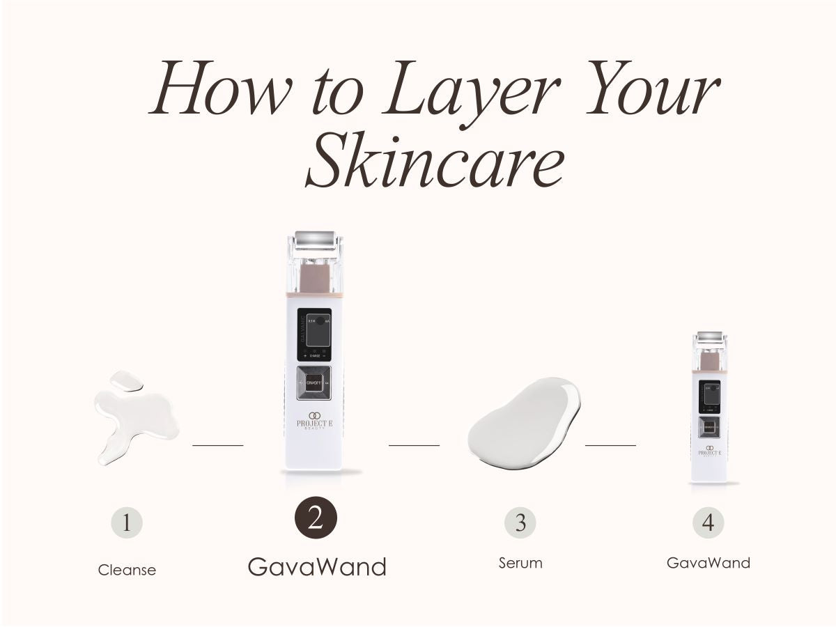 GavaWand galvanic facial roller showing product for unclogging pores and enhancing product absorption
