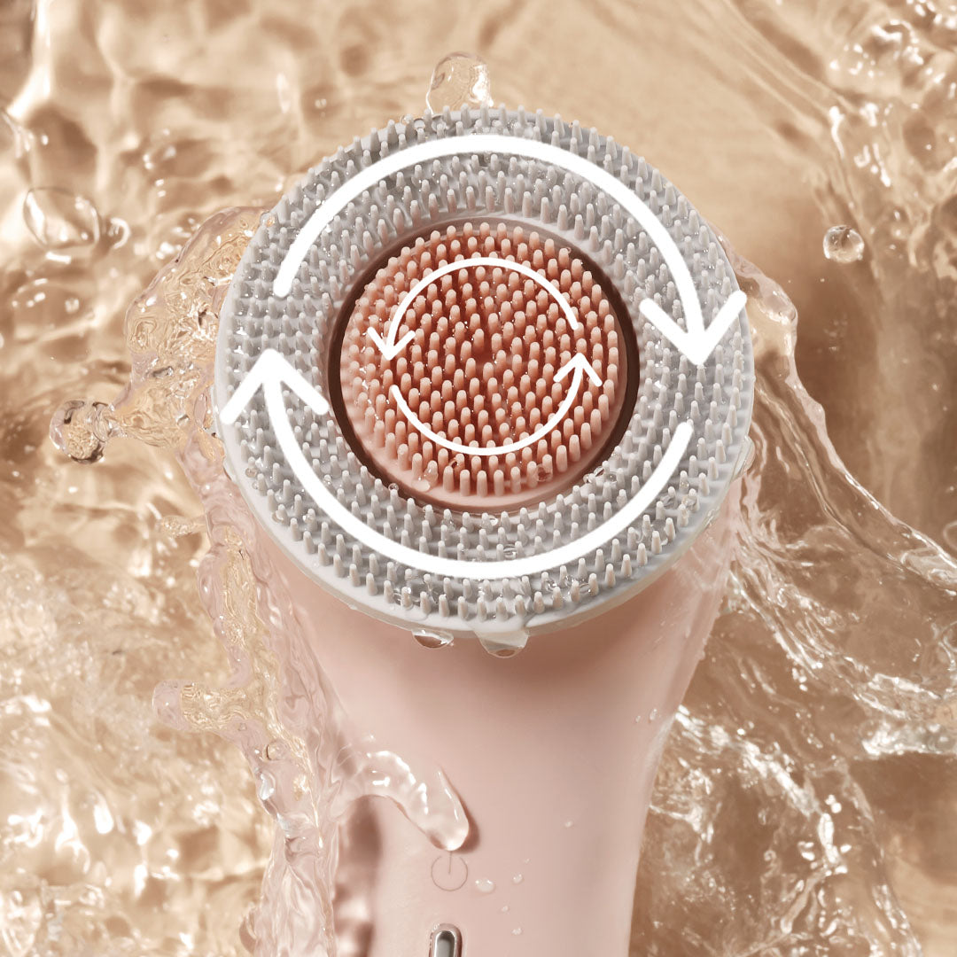Experience advanced cleansing with our high tech rotation mechanism that moves the inner and outer brush heads in opposite directions