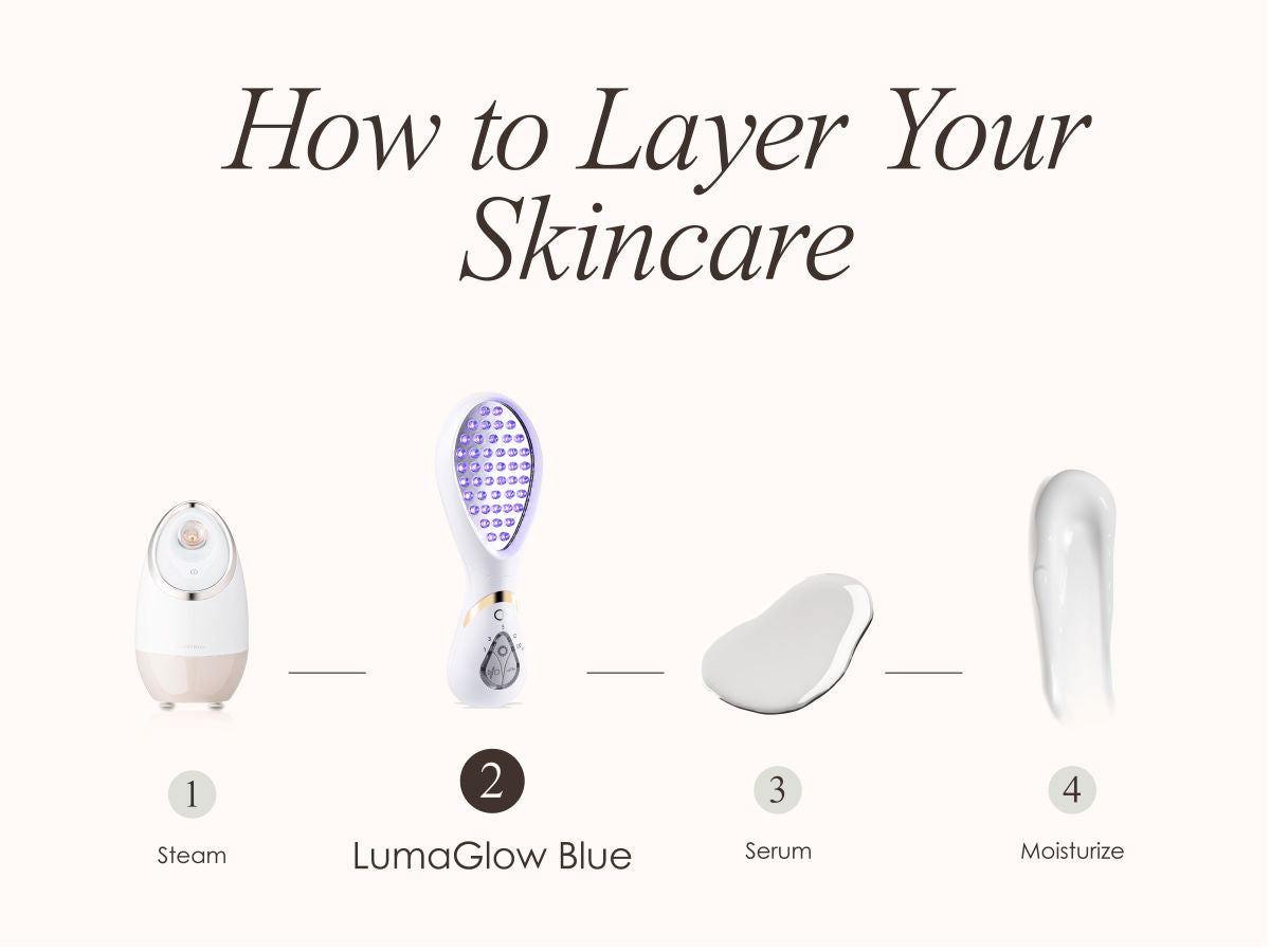 Use the LumaGlow on a freshly cleansed face. Follow up with your favorite serum. We recommend a hyaluronic acid serum for an ultimate hydration boost. For stronger actives like retinol and vitamin C it's best not to apply directly after treatment to prevent irritation. Just wait a couple of hours before applying. If you are using strong anti-acne treatments (creams or oral tablets) please consult your dermatologist before starting blue light therapy treatments